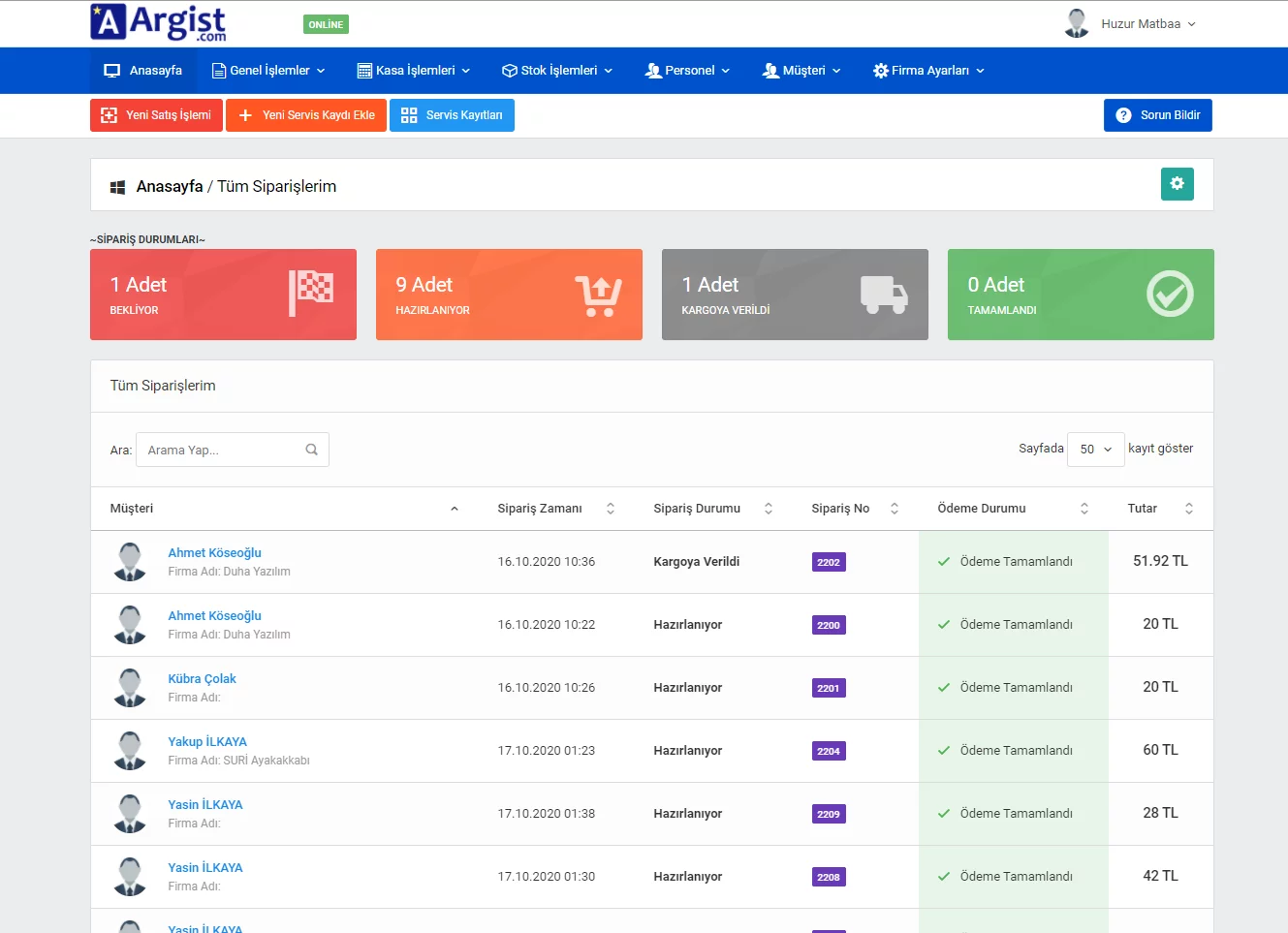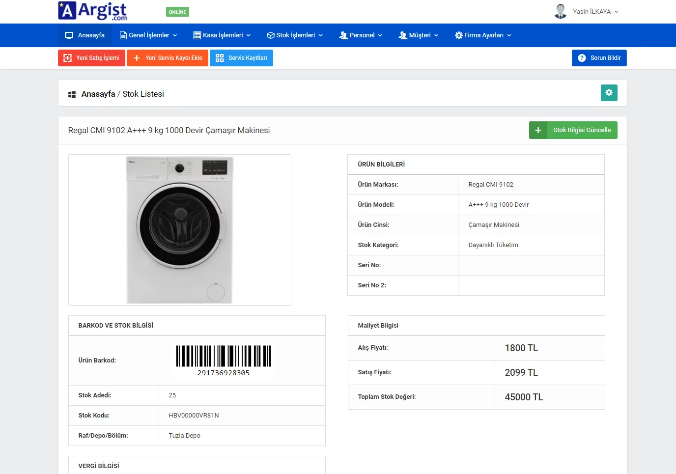 Satışını yaptığınız ürünler sistemdeki stoklarınız ile bağlıdır. Yapacağınız satışlar stok hareketi olarak sistem üzerinde gözükür ve stok takibi kolayca yapılır.