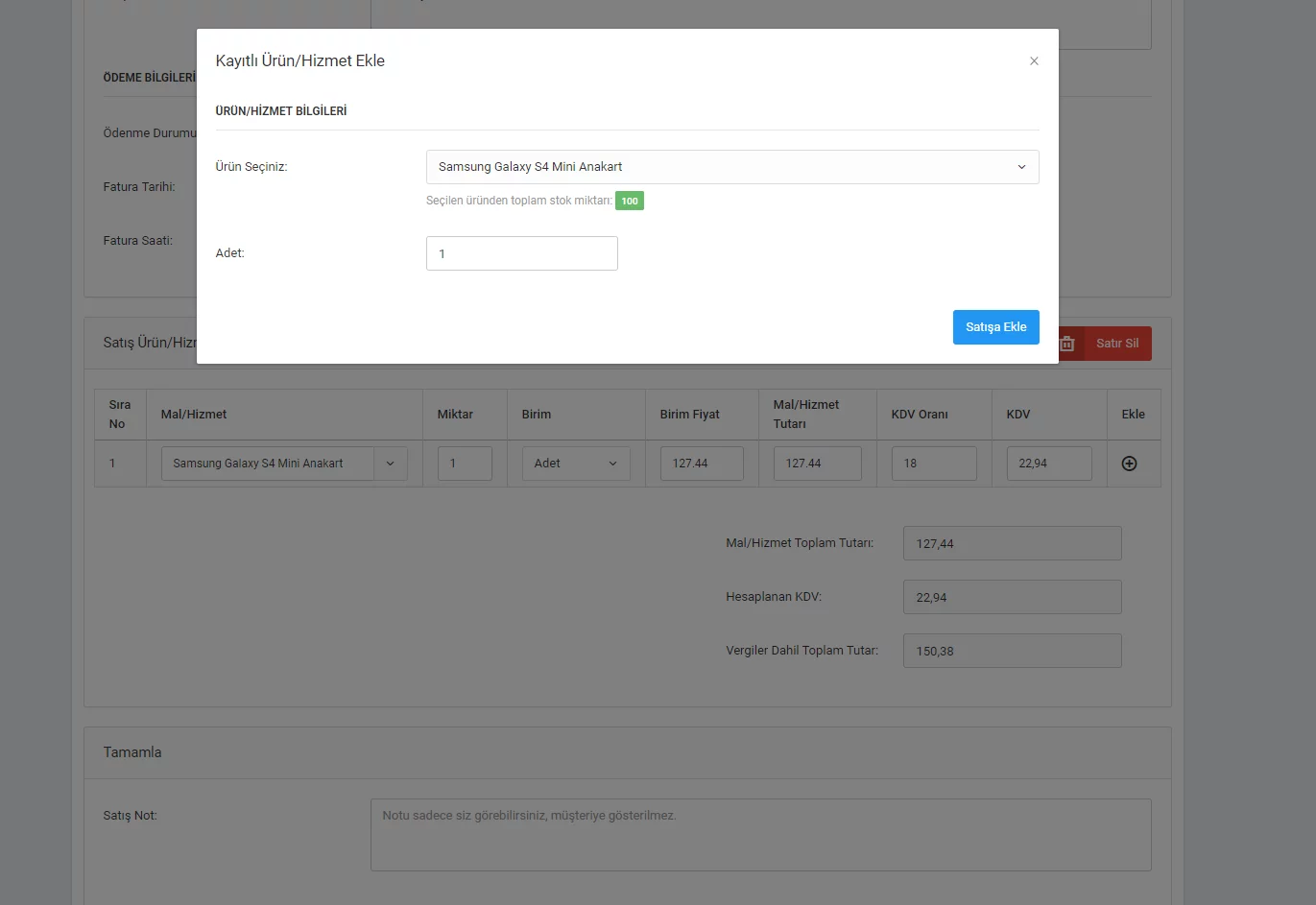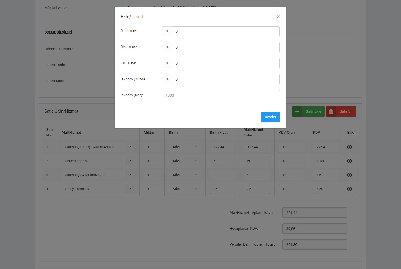 Müşterilerinize satışını yapmak istediğiniz kayıtlı ürün ve hizmetlerinizi anında seçebilir, onlarca ürünü ve hizmeti saniyeler içerisinde satışa çevirebilirsiniz.