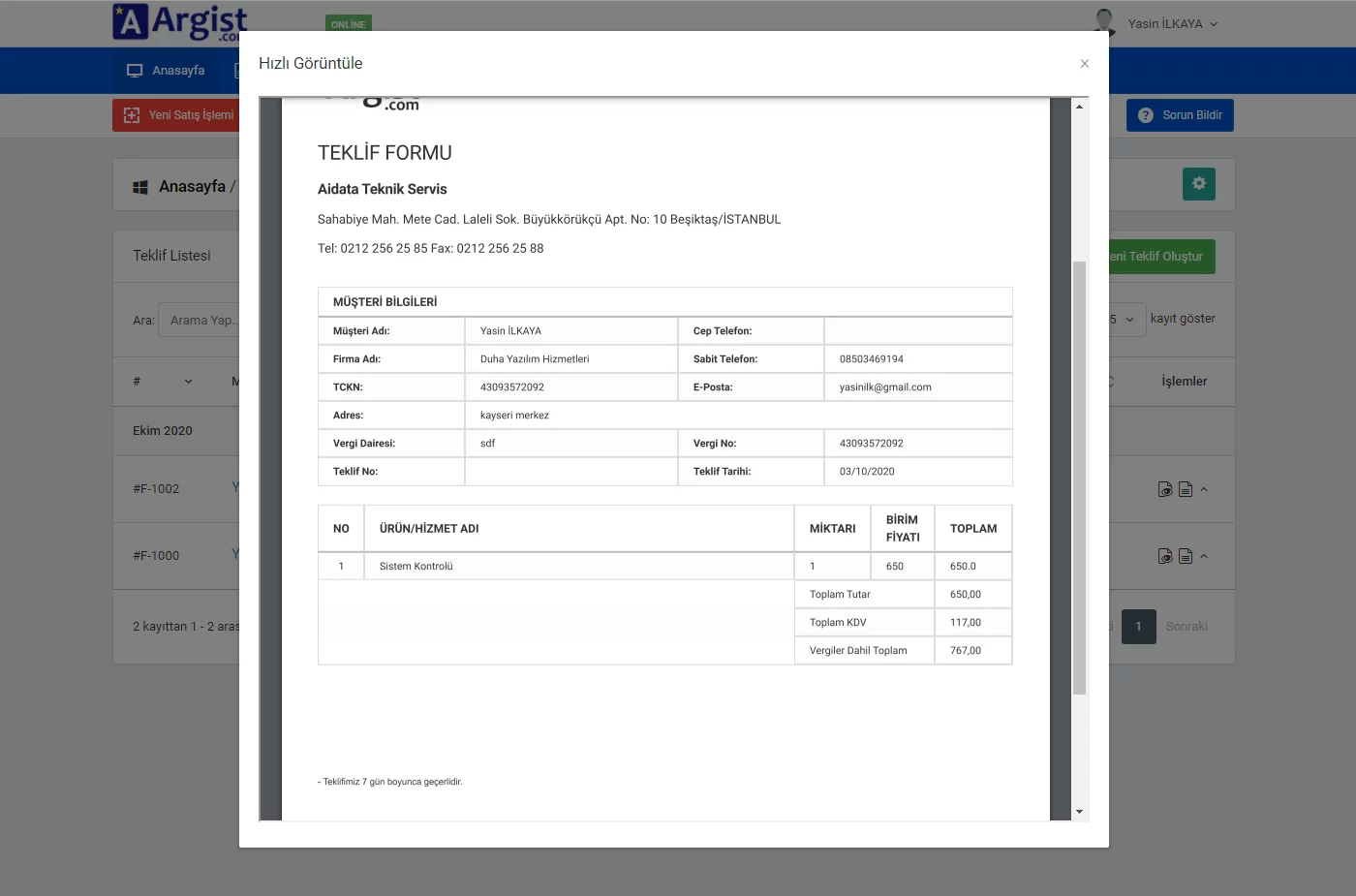 Hizmet ve ürün satışı yapıyorsunuz ve her müşteri için veri girişi yapmaktan sıkıldınız mı ? Argist satış tam size göre saniyeler içerisinde satış oluşturun, stok bağlantısı ile stok takibi ve belgelendirme yapın.